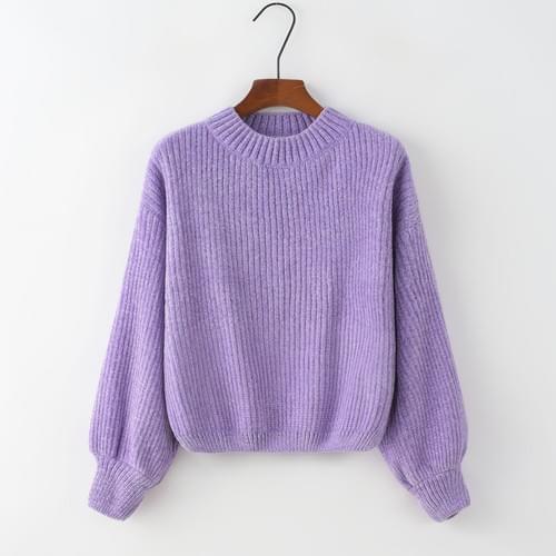 JC0101-女裝純色圓領針織毛衣-紫色